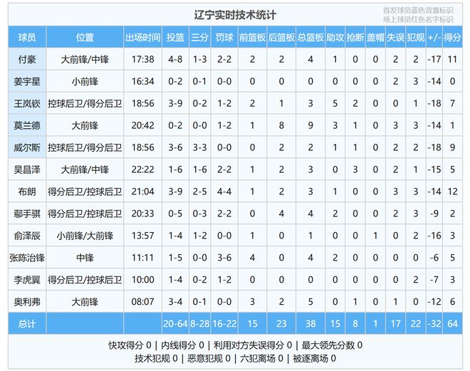 从比赛来看,辽宁队在上半场比赛,就没有打好,特别是在进攻端,完全放不开,整个上半场只得了29分,还不满30分。反观,广厦队却得了46分。就这样,在上半场比赛,辽宁队就输给广厦队17分。进入下半场比赛,辽宁队依然没改变进攻端的问题,两队的分差不断扩大,20分,30分,最终,辽宁队输给了广厦队足足32分,让人大跌眼镜。