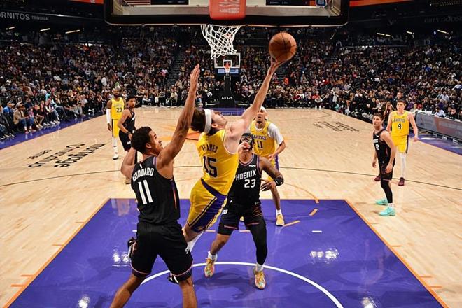 本场比赛中,湖人的后场大将奥斯汀-里夫斯(Austin Reaves)终于完成了复出,但是他在复出后的表现并不理想。里夫斯全场出场21分43秒,投篮11中6,三分线外5中1,罚球5中4,得到了17分2篮板2助攻的数据,还有3次失误和4次犯规,正负值为-17。里夫斯看起来得到了不少分数,但是他在外线投篮方面的手感并不理想,他在组织和串联方面的能力也没有开始发挥出来,他在进攻端并没有起到特别突出的效果。最关键的是,里夫斯在防守端的表现也是令人非常失望的,甚至太阳的双向合同替补后场球员贾马里-布耶(Jamaree Bouyea)都可以连续单打里夫斯成功。里夫斯的个人能力显然不至于如此,但是至少本场比赛他并没有起到这样的作用。