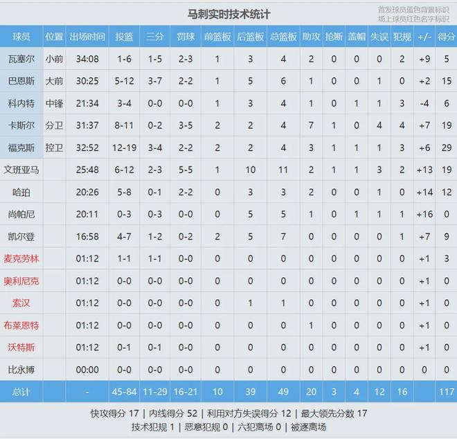 最后来看看比赛数据,今天给马刺来个三连吧!