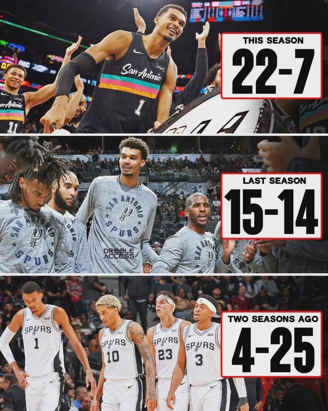 两年之前,马刺开季前29场比赛只有4胜25负,上赛季前29场的战绩是15胜14负,本赛季则来到22胜7负。在竞争激烈的西部,马刺能领先掘金1.5个胜场,稳居西部第二实属不易。文班生涯至今还没打过季后赛,如今终于要来了!