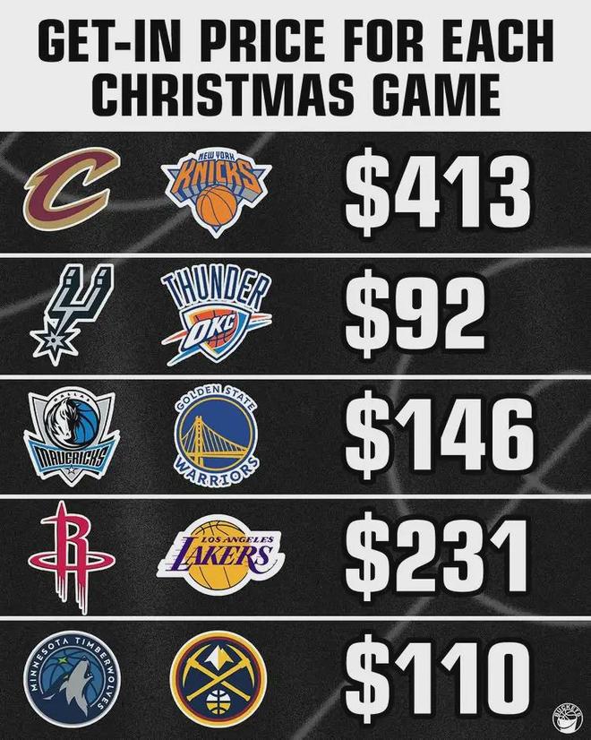 北京时间12月26日,NBA圣诞大战:湖人主场vs火箭。湖人本场最低票价231美元,五场圣诞大战排名第二。尼克斯主场最低票价413美元,遥遥领先。过去10场比赛,湖人只有5胜5负。火箭的状态更差,过去10场比赛仅有4胜6负。