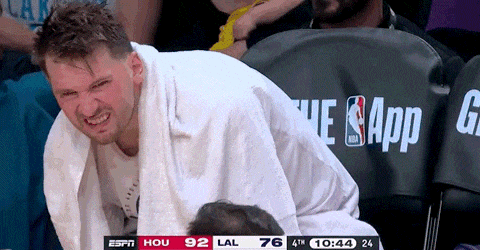 没好利索的东契奇,也一直捂着腿龇牙咧嘴