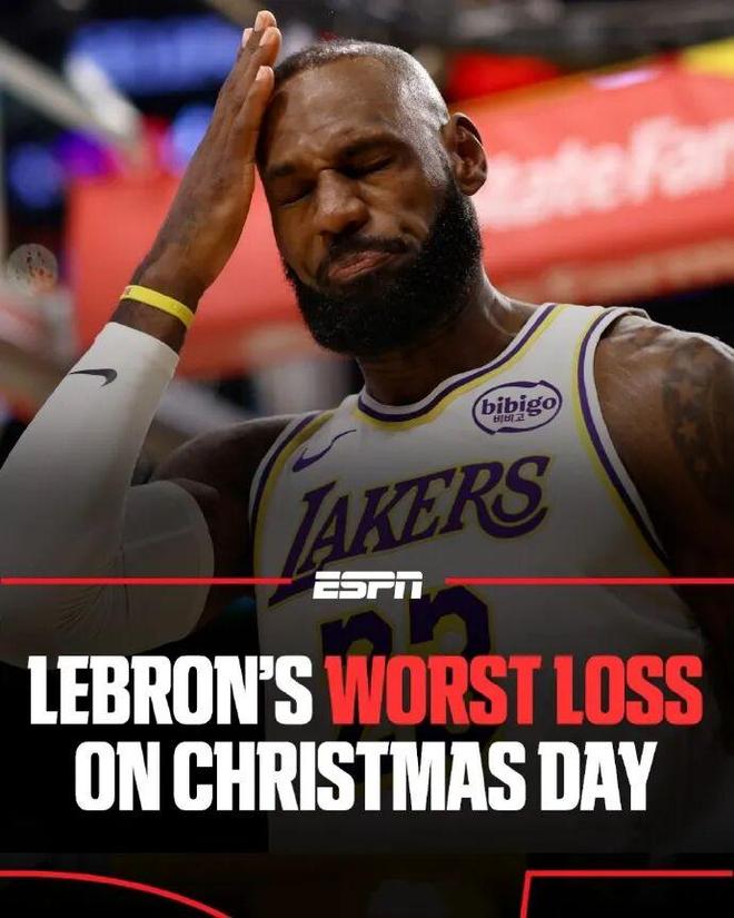 湖人本季10场失利均净负两位数!老詹输圣诞大战后直接走回更衣室