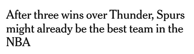马刺一直淡化这波连胜的意义,但在保持谦逊之前,他们也有过短暂的自我肯定。他们清楚,雷霆靠的是稳定和持久的表现击败对手。