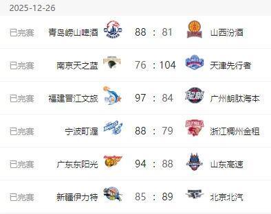 2025年12月26日 天津轻取同曦取赛季首胜 林庭谦25分 詹姆斯22+15 郭昊文21+6