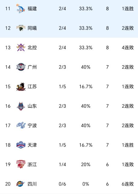 CBA神奇一幕:输球排名却提升3位!郭士强爱将0分,附上最新排名