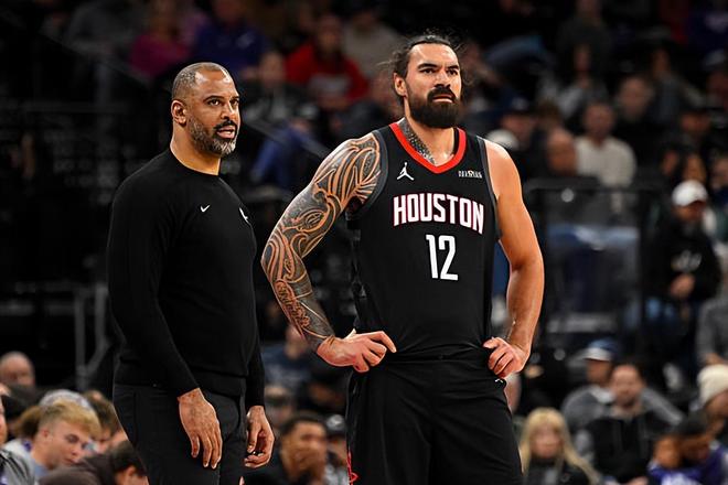 本场比赛中,火箭虽然取得了一场大胜,但是球队的替补中锋史蒂文-亚当斯(Steven Adams)的表现其实是不太令人感到满意的。亚当斯全场出场25分33秒,投篮3中2,得到了4分9篮板2助攻的数据,其中还包括了4个前场篮板,还有1次失误,正负值为-4。亚当斯在进攻端还是没有展现出足够的竞争力,他虽然能够抢到前场篮板,但是他也确实是没有办法完成得分,或者是在进攻端起到更大的作用,他的前场篮板并不能转化成最终的得分。亚当斯在防守端在篮板保护和内线防守方面也能够起到一定的作用,但是他在移动速度方面的短板也是相当明显的。另一方面,火箭在本场比赛中又一次在一段时间内安排了双塔战术,结果效果依然是一塌糊涂的。要是没有这莫名其妙的双塔,火箭可能在上半场比赛就能够建立起20分以上的领先优势了,整个下半场比赛都可能成为垃圾时间。