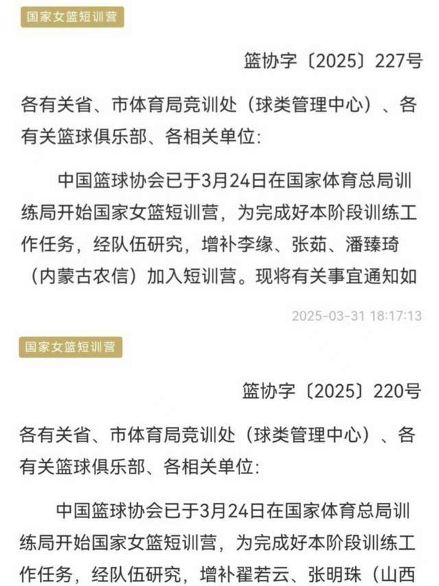 随后联赛进一步进行,内蒙古、山西队出局后,国家队又补充了李缘、张茹、潘臻琦、翟若云等球员,进入到短训营。
