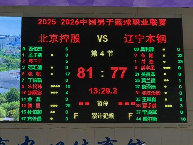 CBA常规赛:北控队主场4分险胜辽宁队止连败
