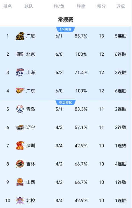 随着广厦大胜,辽宁遭逆转,四川7连败,CBA最新积分榜:榜首易主