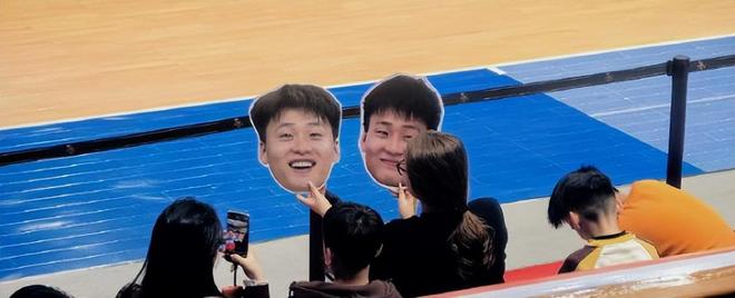 赛前有两位女球迷拿着赵睿的周边在场边的席位应援,赵睿走到哪里都是主场。