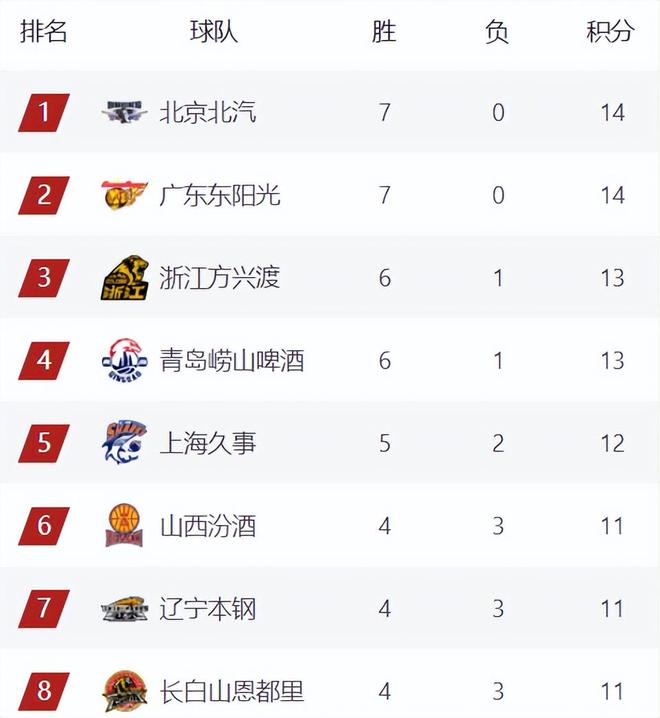 北京广东7连胜继续领跑,但北京却有可能会在下一轮被广东反超,因为第8轮北京将在客场迎战广厦,以目前广厦的阵容配置来说,尽管本土球员不如北京豪华,但外援要比北京强硬太多了,广厦有机会在下一轮击败北京。