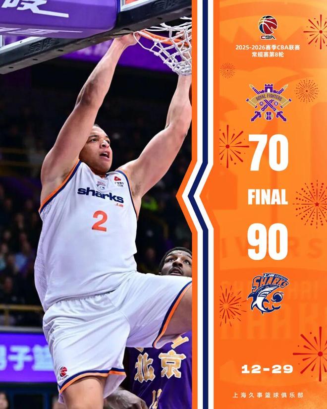 2025年12月29日 上海轻取北控迎4连胜 洛夫顿18+10+5 王哲林13+7 廖三宁14中5