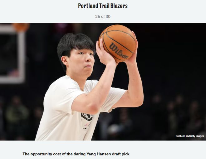 北京时间12月31日,在2025年的最后一天,知名美媒Bleacher Report点评了30支NBA球队2025年最后悔的决策。其中,他们认为开拓者最后悔的决策是冒险在首轮选中杨瀚森。具体点评如下——