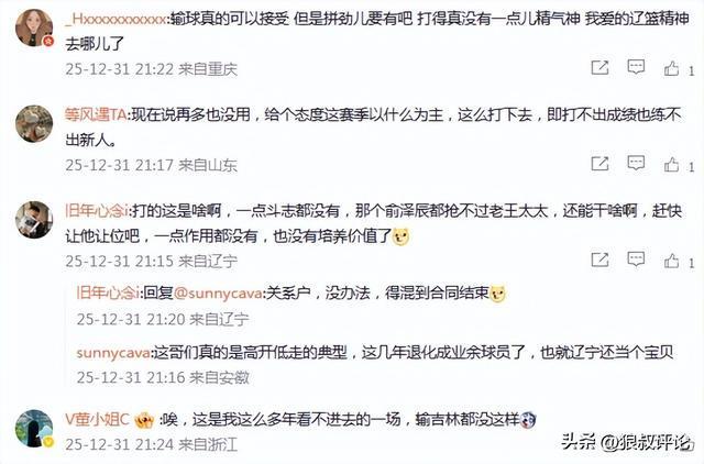媒体人“三土带刺”发文点评:“2025年的最后一天,辽篮主场65-91输给上海,2013年12月之后、12年来首次遭遇四连败。”