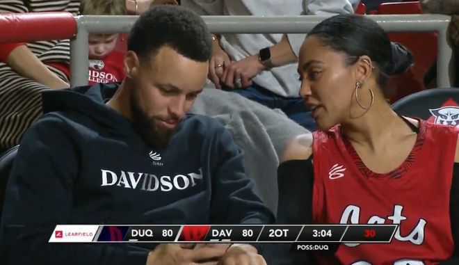 这场庆祝活动中库里并非孤身一人,他的妻子阿耶莎坐在场边陪他一同观赛。他的一些NBA队友也专程赶来为这位四届总冠军得主送上支持,其中包括格林、巴特勒和穆迪。