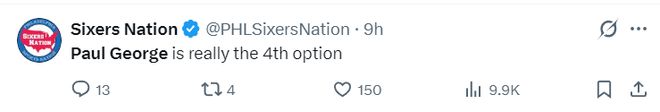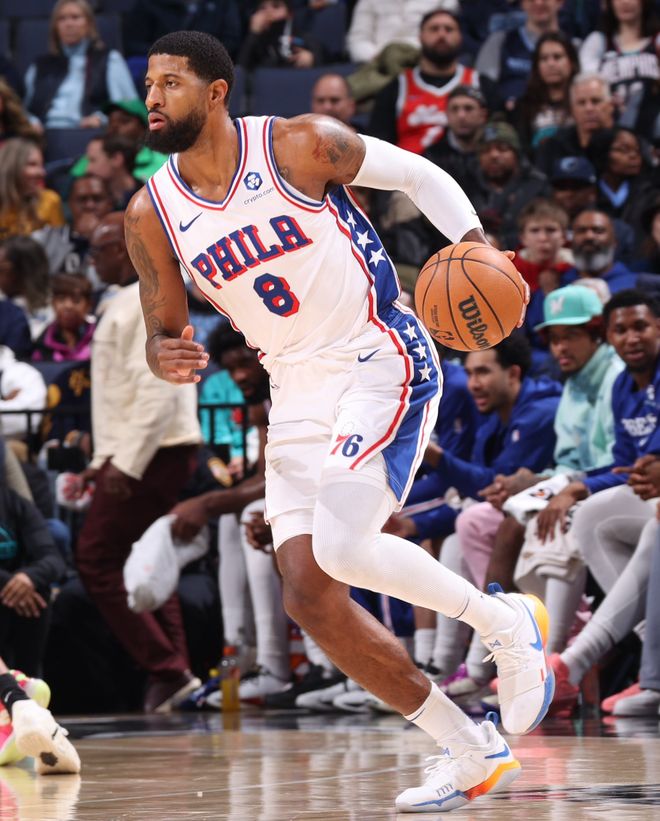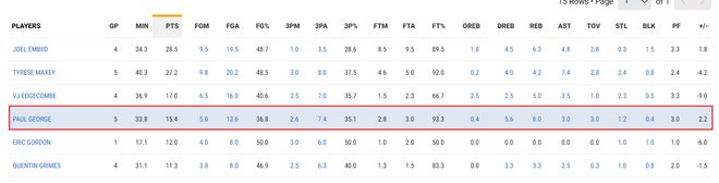 替补席的格兰姆斯场均31.1分钟,拿到11.3分,命中率46.9%,三分命中率40%,他的效率值比乔治高不少,更别说场均28.5分的恩比德、场均27.2分的马克西,场均17分的埃奇库姆,很明显乔治在这支费城就连老四都不太稳。