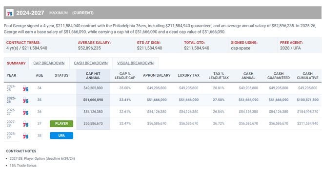 乔治本赛季的年薪高达5166万,但他却只是一支球队的第四选择甚至是第五选择,说费城签他亏麻了没有任何问题,费城为了签下他放走詹姆斯-哈登真的巨大的败笔。