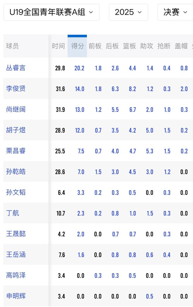 【主要球员数据】