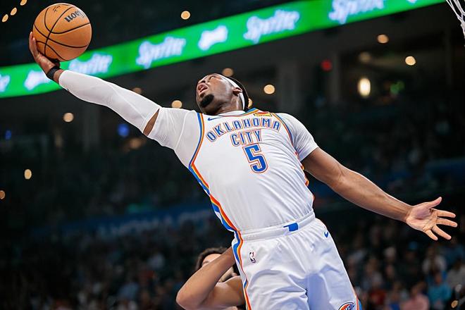 本场比赛中,雷霆的先发侧翼大闸吕冈茨-多尔特(Luguentz Dort)的整体也是有了明显的提升。多尔特全场出场26分13秒,投篮5中4,三分线外4中3,得到了11分3篮板1抢断的数据,还有2次犯规,正负值更是达到了全场最高的+33。多尔特在防守端依然是保持了自己应有的水准,依然是有着超强的个人防守能力,保持了应有的防守强度,并且起到了很好的效果。最关键的是,多尔特在本场比赛中算是将自己在进攻端应有的才能发挥了出来,他的进攻效率相当不错,他在三分线外更是给对手制造了不小的威胁。在出手次数不多的情况下,他也是得到了不少分数。本场比赛中多尔特的表现算得上是攻守兼备,他的一系列出色表现也是为球队的这场大胜提供了巨大的支持。