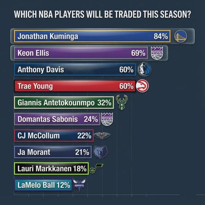 今天库明加的状态升级成可以出战,科尔偏偏不让他上场。本赛季最有可能被交易的球员,库明加84%的概率高居联盟第一!休赛期库明加刚刚续约,当地时间1月15日之后才能被交易。也就是说,现在距离库明加交易解封只剩10来天。