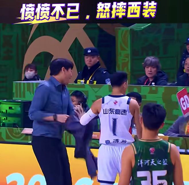 另一个被驱逐出场的是主教练邱彪。面对裁判的如此吹罚,山东队主教练邱彪,也是十分生气,于是就找裁判进行理论,在没有得到一个合理解释之后, 邱彪是越来越激动,直接脱掉了西装,狠狠地砸在地上,还冲着裁判走去,吓得125号裁判不断后退,好在,2名山东队球员及时拉住了邱彪,不然后果不堪设想,结果,大家也是看到了,邱彪被裁判直接驱逐出场……离开赛场的时候,邱彪依然是不断咆哮,十分不满!