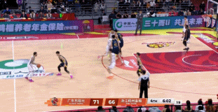 焦泊乔遭达卡里血帽,萨林杰空切轻松得手,奎因上演高难度滞空补篮连得4分;接下来焦泊乔接萨林杰内传内助攻再上分,3分42秒徐杰轻松完成1打0上篮+飚进个人第4记三分后,广东一波19-8领先来到62-46!