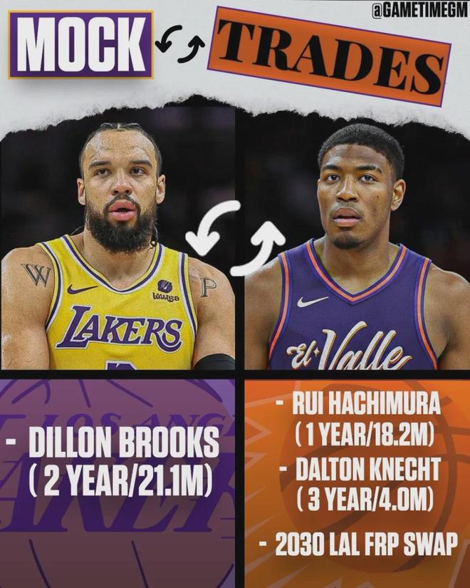最近关于狄龙和湖人的流言愈演愈烈,各种模拟交易方案都出来了。一种是2换1:湖人用里夫斯+克内克特换狄龙。另一种3换1:湖人打包八村塁+克内克特+1个首轮互换权。为了稳定军心,太阳老板公开回应,拒绝交易狄龙!