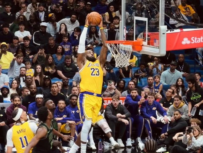 空接暴扣+大风车劈扣!41岁詹皇轰30+8+8再破纪录:湖人双核逞威