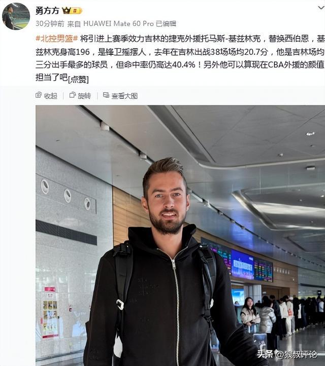 此外,北控男篮将引进上赛季效力吉林的捷克外援托马斯-基兹林克,替换西伯恩。