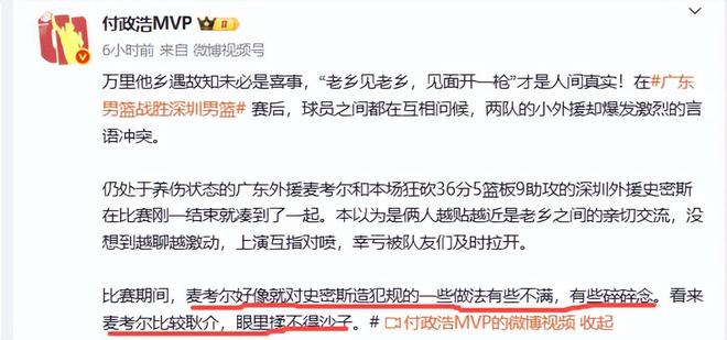 破案了!为何赛后粤深两队小外援吵架打起嘴仗?付政浩道出原因
