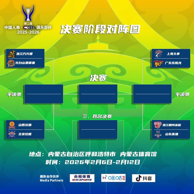 北京时间1月7日,CBA官方公布俱乐部杯决赛阶段赛程。