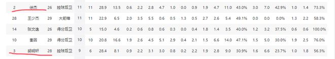 不过,胡明轩的竞技状态和表现并没有徐杰出色。截至第12轮,胡明轩场均仅能为球队贡献8.1分3助攻,三分命中率低至23.7%,场均还有2.2次失误。反观徐杰,他场均能砍13.5分4.7助攻,三分命中率42.9%,而且仅会出现0.9次失误,各项数据均在胡明轩之上。