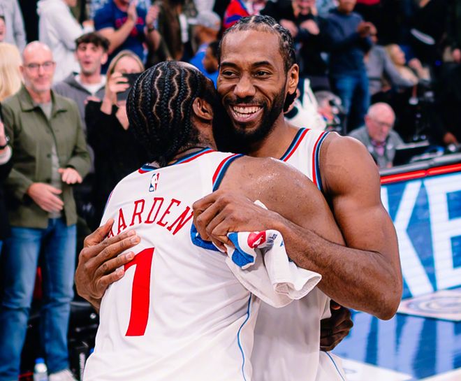 快船在赛季前27场比赛中,只赢下6场,出现了各种各样的问题,保罗大闹更衣室,比尔赛季报销,伦纳德11月份的脚踝伤势,整个基本盘就剩下一个哈登。和湖人的比赛前,快船正好处在西部垫底,泰伦卢提出了剩余赛季目标:剩余55场比赛,至少赢35场。从击败湖人起,快船11战9胜,距离西部第十的灰熊只差1个胜场。按照这个趋势打下去,快船进附加赛包括冲击季后赛问题不大,球队基本盘依旧很强,有哈登,有无所不能的小卡。数据显示,过去10场比赛中,小卡场均32.5分7篮板4助攻2.7抢断,三项命中率是53.1%+41.7%+89.7%。