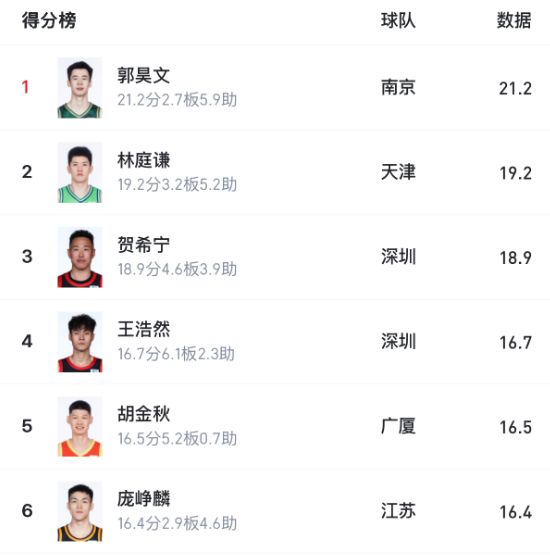 而将范围扩大到前25名,也只有郭昊文、林 庭谦、贺希宁、王浩然、胡金秋和庞峥麟这6人。