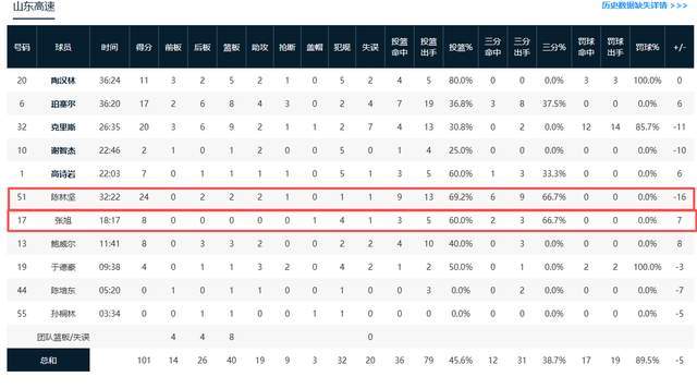 我滴个乖乖,别看陈林坚拿到24分,可他在场上正负值为-16,全队倒数第一,难道只看得分来衡量其价值吗?而张旭,别看拿到8分,正负值也为+7,可他真的会打篮球吗?就这数据,不觉得辣眼睛吗?