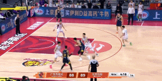 7分37秒,胡队长不信邪继续强杀终于制造2+1,一回合后杜润旺反击飚进三分,胡明轩终于打开得分账户,果断命中外线三分连得6分,广东9-0反超北控。