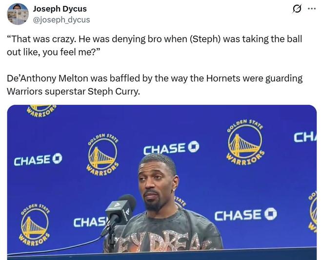 梅尔顿赛后也感叹到:“他们真是太疯狂了,当库里发界外球时,他们都在死缠烂打。”