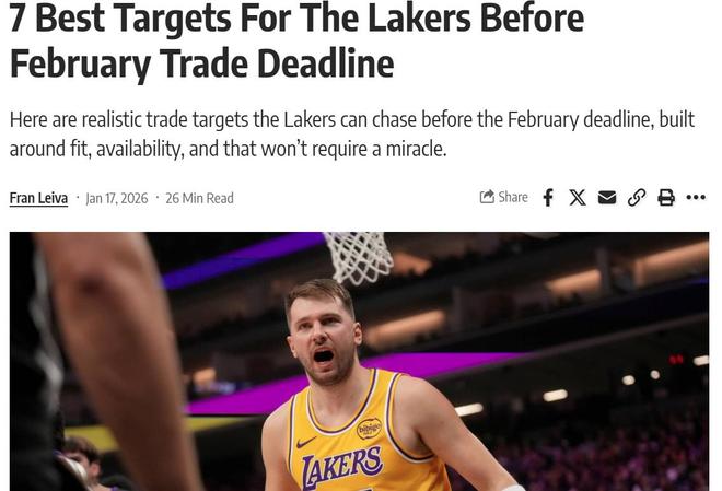 湖人6战5败短板明显!美媒送7大最佳交易目标:勇士库明加仅排第5