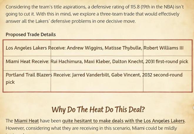 美媒《Fadeaway World》提出了一套3方交易方案: