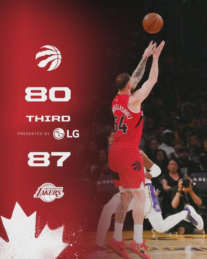 第三节最后2分钟,猛龙防守出现问题,詹姆斯和八村塁连中三分,湖人拉开到8分。三节打完,湖人87-80领先猛龙7分。艾顿9中9已经砍下18分,拉拉维亚5中1仅得2分。昨天打开拓者,拉拉维亚全场2中0,估计他要被拿下首发了。