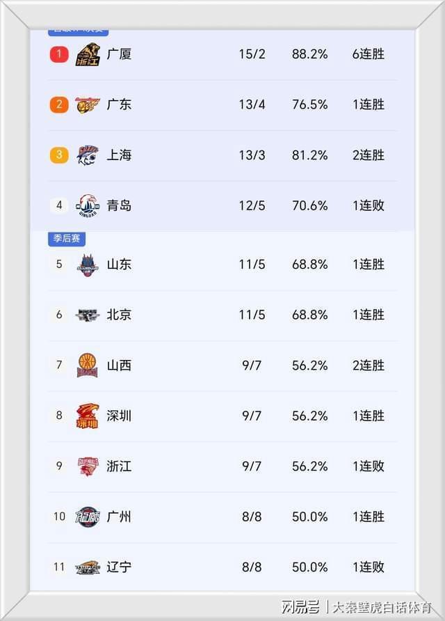 ③、山东回到前五,北京男篮11胜5负位居第6;