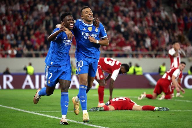 希腊劲旅率先发难,弧顶外围的连续传导配合非常默契,一记远射建立梦幻开局。皇马没有过于着急,全队保持镇静,进攻处理井然有序,逐渐掌控节奏,危难之际姆巴佩强势爆发,短短八分钟上演帽子戏法,头顶脚踢尽显超巨本色,一己之力瞬间改变局面。