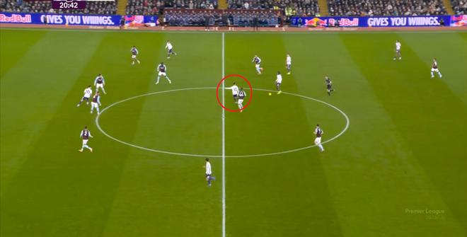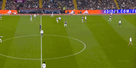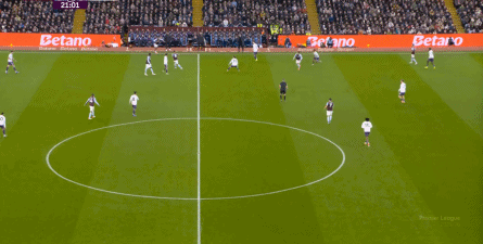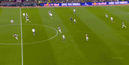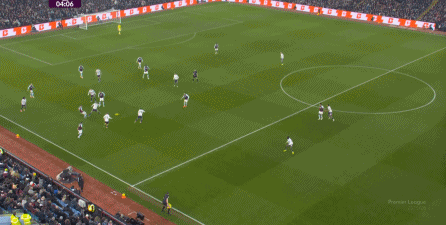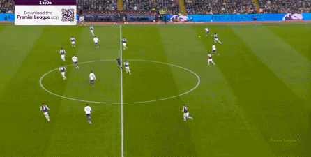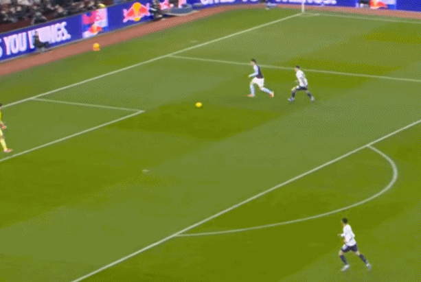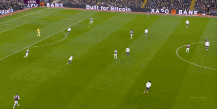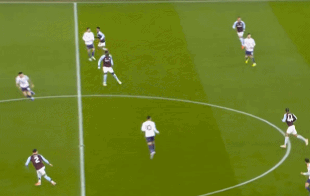 包括第二球也是一样,前戏依旧是维拉吸引曼联压迫,然后用长球连接前场,还是拉出空当之后,由麦金带出转移到弱侧的进攻: