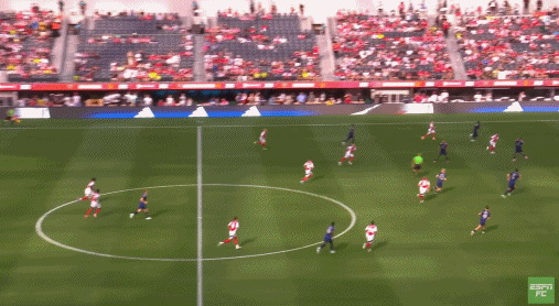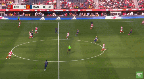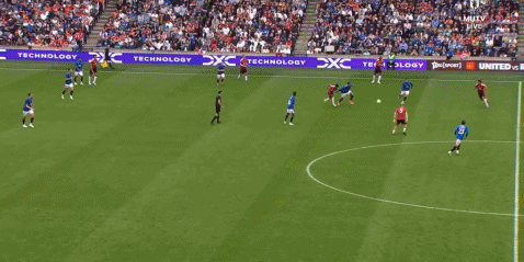 结果芒特没有顶住奥纳纳,麦金可是靠自己的手臂动作顶住了卢克-肖,然后直接斜长传找到了罗杰斯: