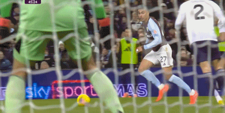 所以客观来说,约罗在第二球里的问题确实稍小一点,毕竟事出仓促,而且在禁区内,不去快速贴身的话就没有什么很好的防守选择了: