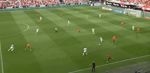 在这种非常类似于人盯人的防守体系里,由于没有自由人的角色,这场也没有具备自由人思路的特殊球员,所以就会看起来非常像没有防守体系和逻辑。