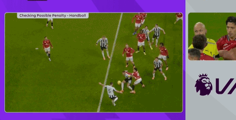 第62分钟,纽卡斯尔角球攻势,舍尔后点抽射击中利桑德罗-马丁内斯,随后示意对方手球。不过裁判根据VAR提示,判定是反弹球,因此没有判罚点球。