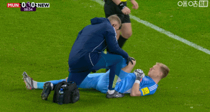 第9分钟,拉姆斯代尔出现受伤状况,接受队医治疗