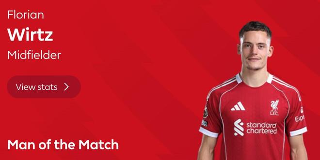 斩获红军生涯首球,维尔茨当选利物浦vs狼队全场最佳球员